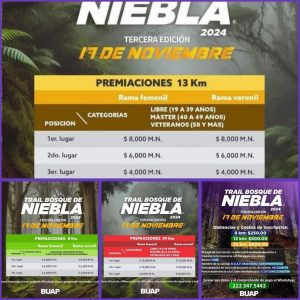 Las Direcciones de Deportes, Turismo y Protección Civil del Gobierno Municipal de Teziutlán, trabajan en modo coordinado con la Benemérita Universidad Autónoma de Puebla para la realización del Trail Bosque de Niebla, el cual se realizará el 17 de Noviembre en Teziutlán en su tercera edición.