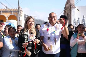Chignautla, Puebla.- Acompañado de su esposa la maestra Monse Andrade, presidenta del sistema DIF municipal regidores,  colaboradores y población, el presidente municipal Juan Toral, cortó el listón inaugural de la pavimentación con concreto hidráulico De la calle Pedregal en la localidad de San Isidro y el empedrado de la calle Hidalgo en la cabecera municipal.