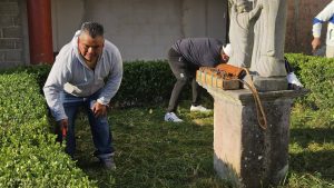 Durante la jornada, autoridades municipales y habitantes participaron en labores de limpieza y mantenimiento, retomando estas prácticas comunitarias que fomentan la participación social y contribuyen al embellecimiento de espacios que forman parte de la identidad de la comunidad.